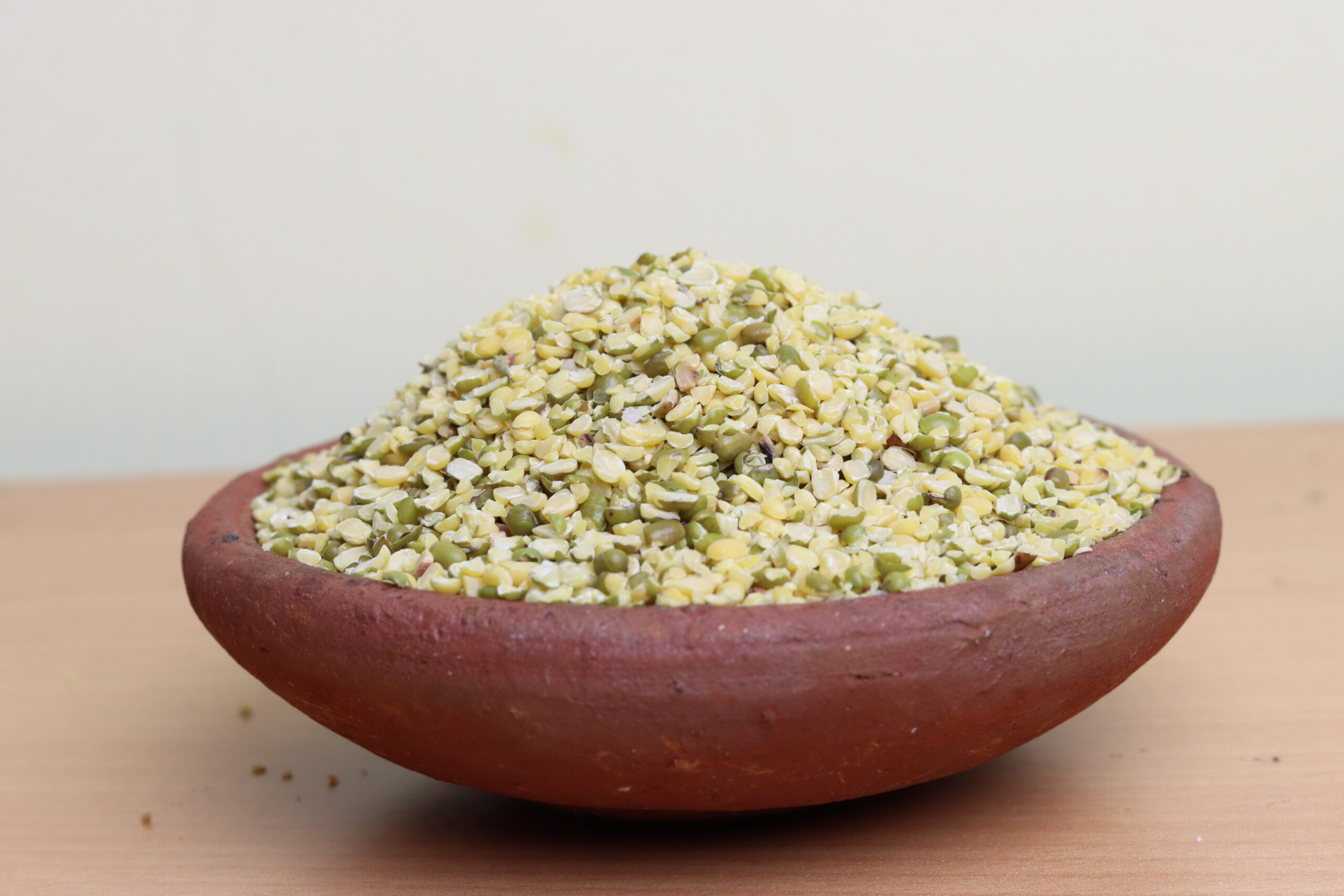 சூழல் சீராக இருந்த நேரத்தில் நன்கு வளர்ந்த பச்சை பருப்புகள் (Green Gram) பரிசுத்தமாகத் தேர்ந்தெடுக்கப்பட்டு, பாரம்பரிய முறையில் வறுத்து உடைத்தது. இது சீறடுக்கும் வாசனை, சுவை மற்றும் ஜீரண சக்தியை அளிக்கின்றது.